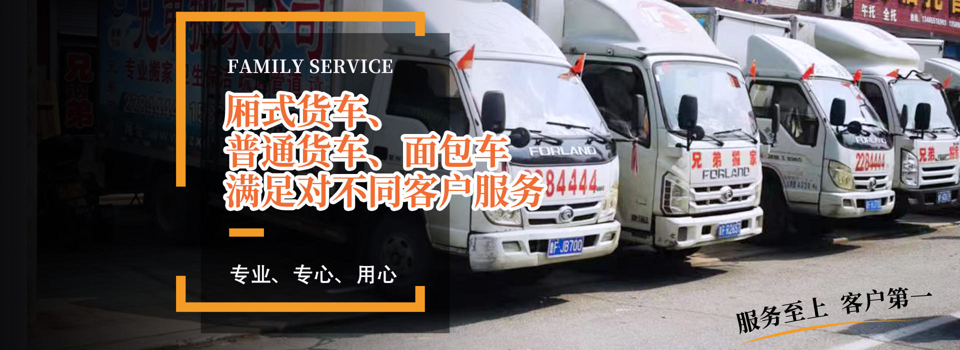 公司備有:廂式貨車、普通貨車、面包車等,滿足對不同客戶服務,為萊州及周邊地區(qū)搬家服務,提供方便。曾被廣大客戶評為“專業(yè)、專心、用心”的搬家公司。以合理收費為標準,以客戶滿意為服務質量,力作萊州人的好兄弟!您的滿意就是我們的追求!歡迎各企事業(yè)單位及個人來電咨詢!